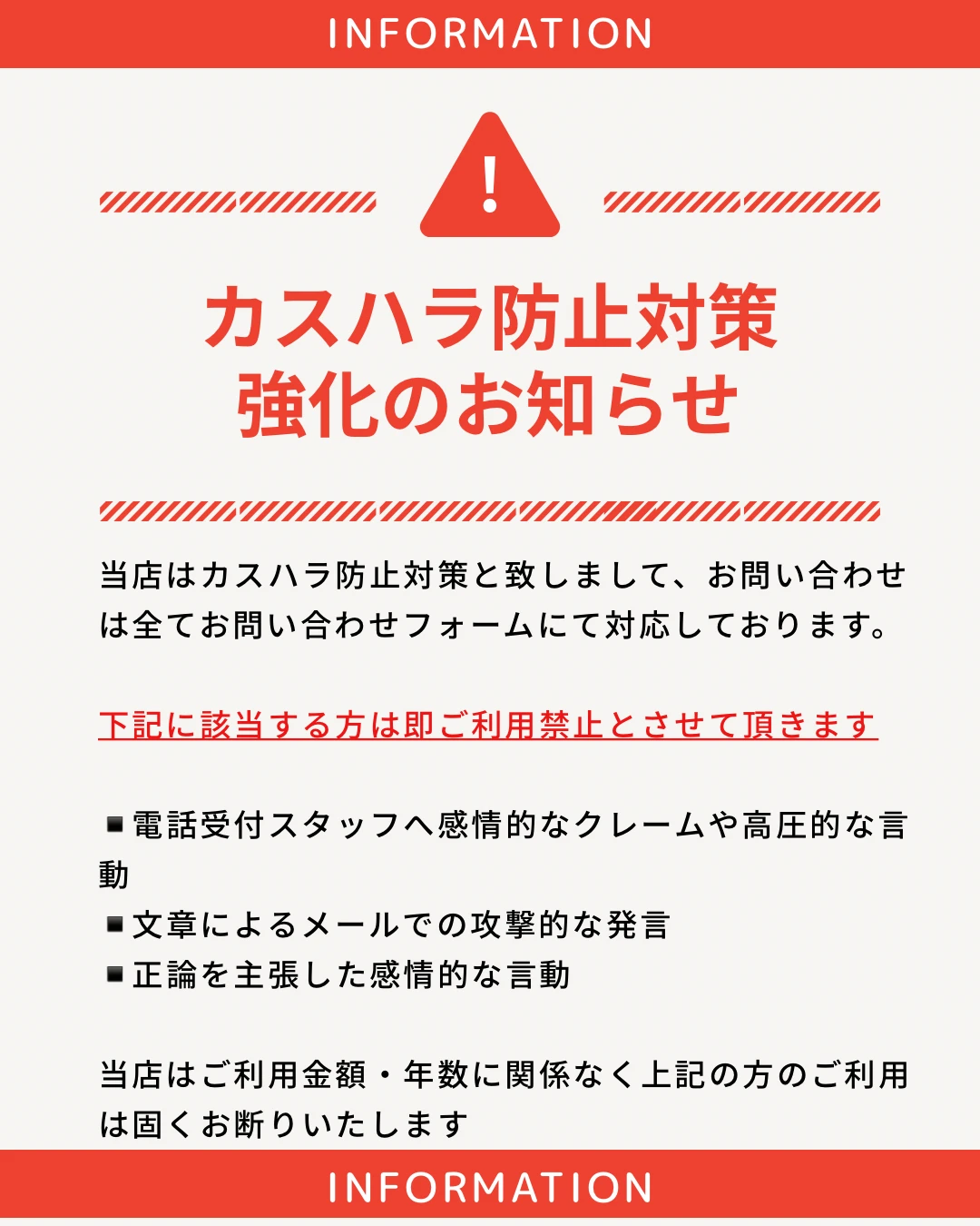 03/01 当店は18歳以下の方のご利用をお断りしております。お問い合わせは【お問い合わせフォーム】からのご連絡をお願いいたします。お電話でのキャンセルやお問い合わせは承っておりません❌